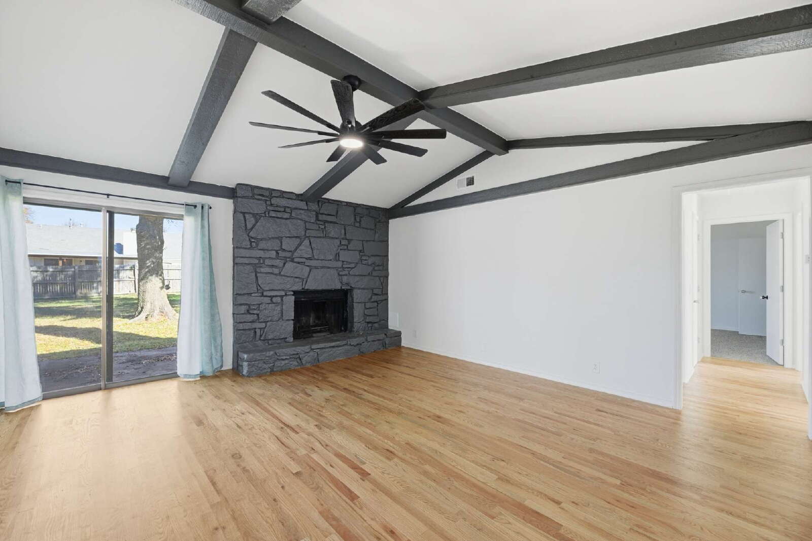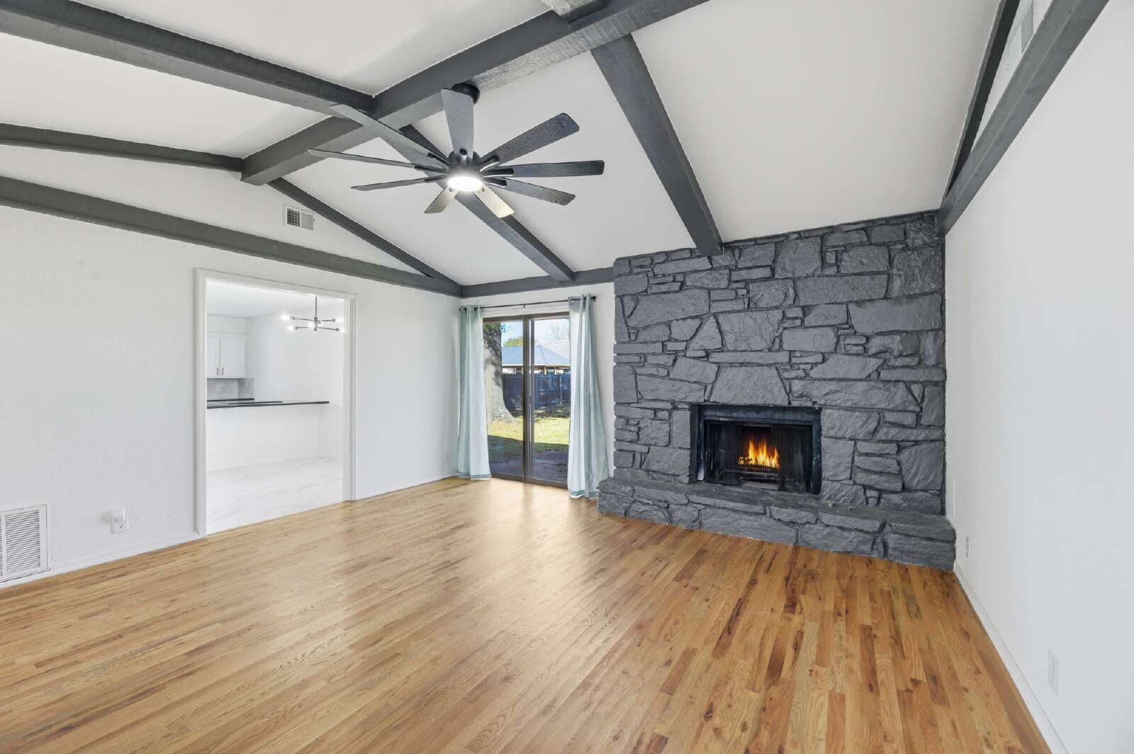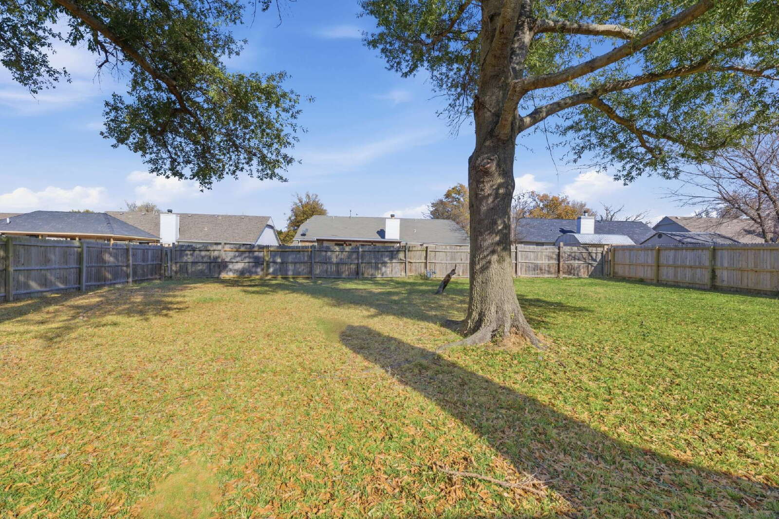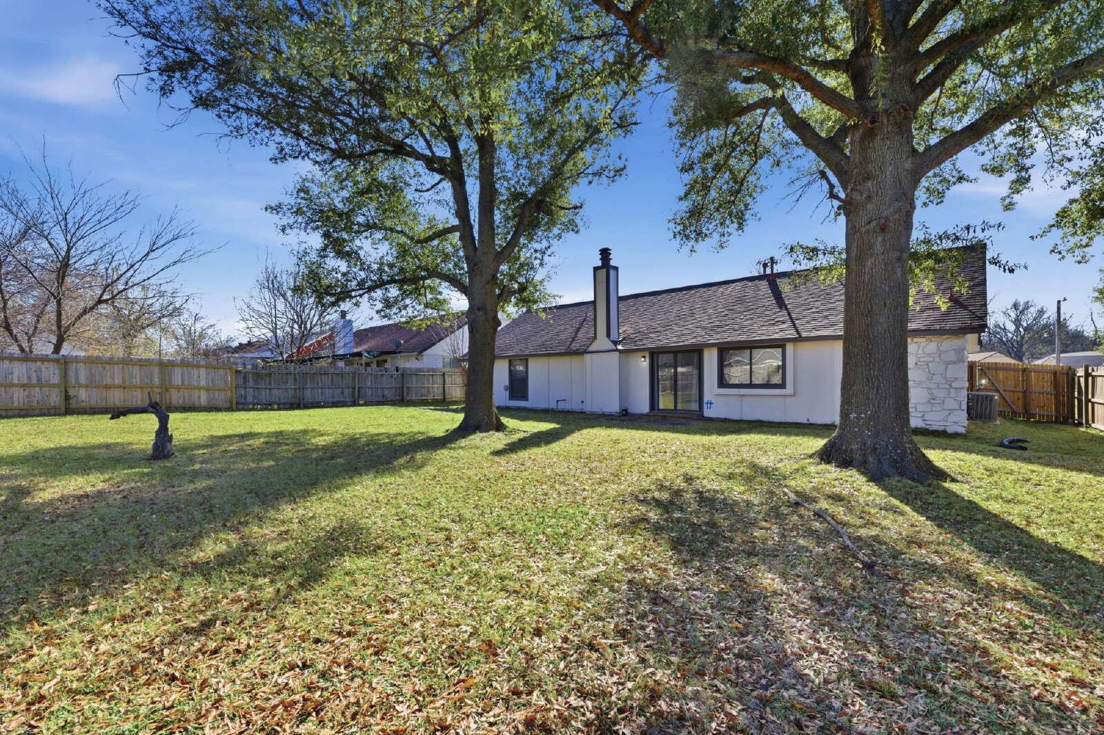 A gas fireplace anchors the living area, and the backyard is fully fenced with mature trees, offering a spacious outdoor setting. The home sits just a couple miles from Highway 169 and Highway 51, with quick access to the Eastgate complex, multiple grocery stores, shopping centers, and plenty of dining options.