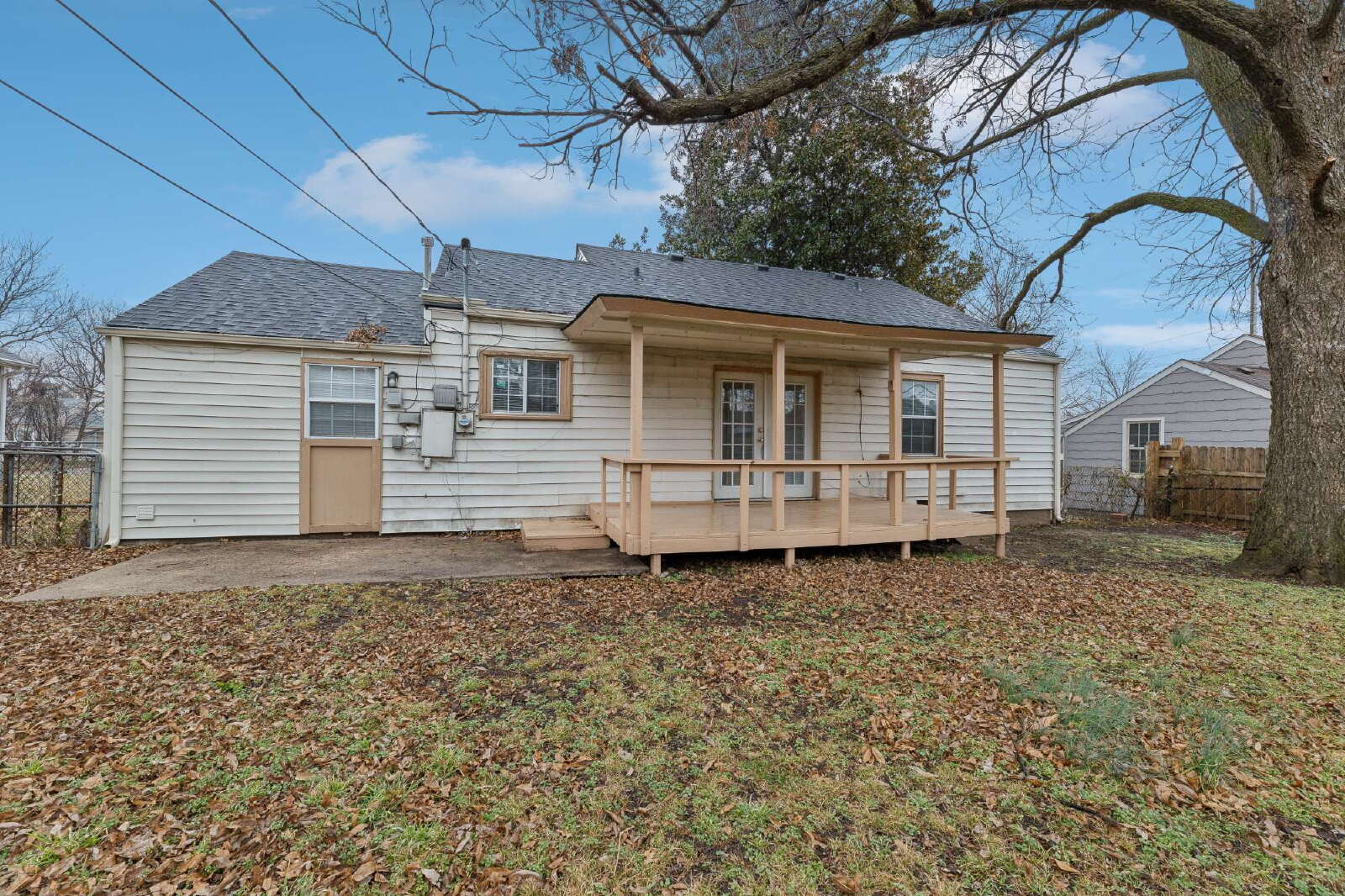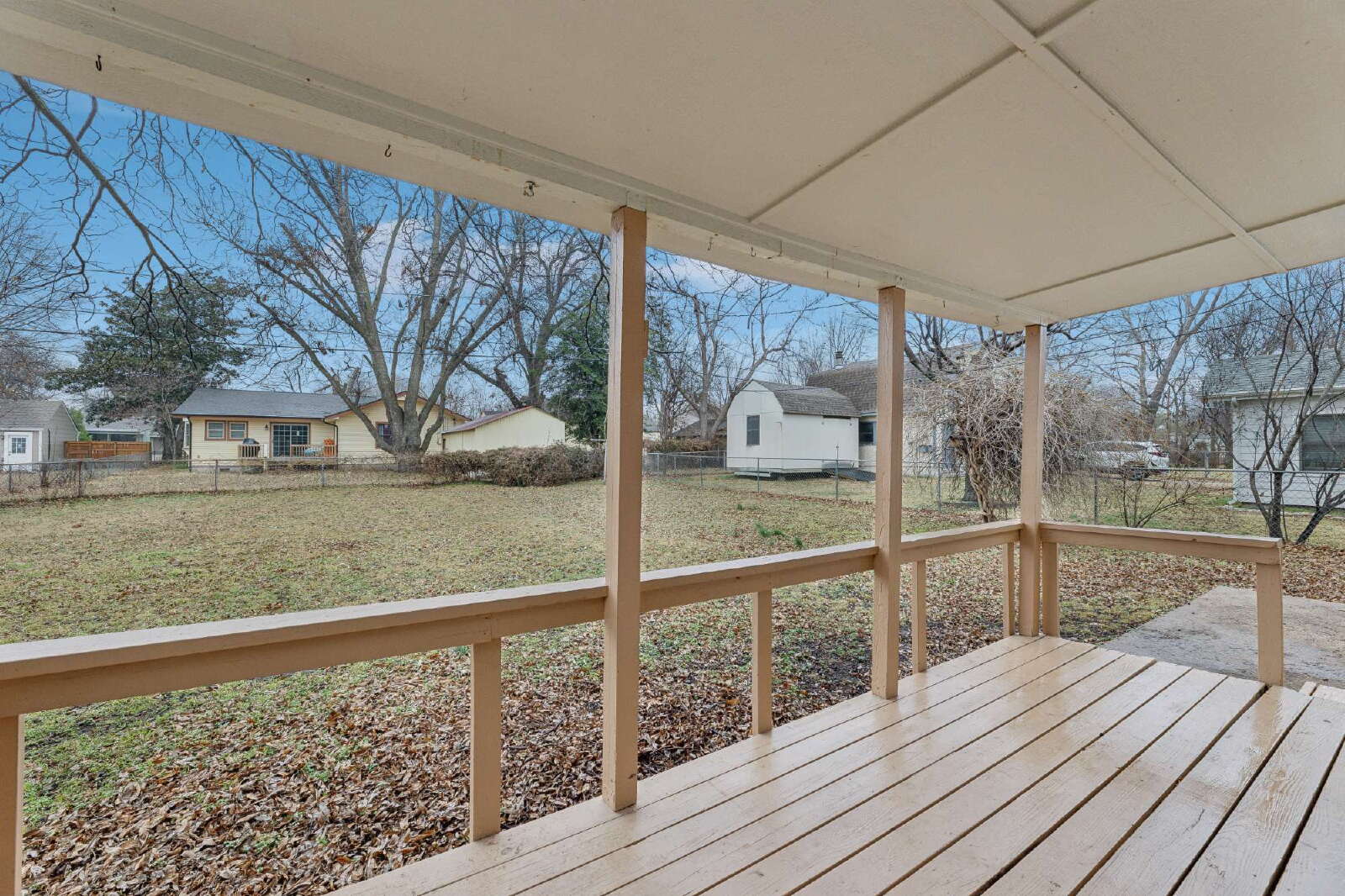 Step outside to enjoy the large fenced backyard, which provides plenty of space for outdoor activities or relaxation, with mature trees offering shade and privacy. The back door opens onto a spacious porch, perfect for outdoor seating or entertaining.